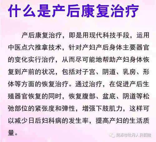 为帮助更多女性度过一个轻松的备孕期、孕期及产后康复期,4月25日,牡丹人民医院母婴康复保健中心正式成立。该中心以强大的妇产科医疗专家队伍为依托,由临床中医专家根据个人体质辩证施治,私人订制康复保健计划。这里提供规模化的女性健康体检、妇科病诊治、孕前保健、产后中药熏蒸、产后康复、盆底功能康复、妇女心理卫生、婴幼儿保健等服务(下图)。特别是产后康复,该中心拥有10台综合治理仪,对产妇的子宫复旧、乳腺疏通、催乳、乳腺炎、体型恢复进行康复治疗,是目前我市设备齐全、专业技术力量雄厚的公立产后专业保健综合治疗中心。24小时服务电话:5566699、5291081。